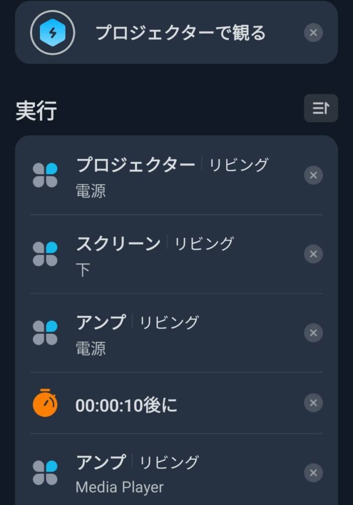 プロジェクターの起動に時間がかかるので、10秒待った後にアンプのモード切替の指示を出しています。