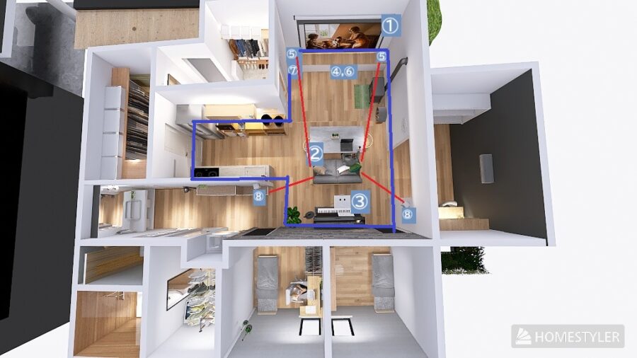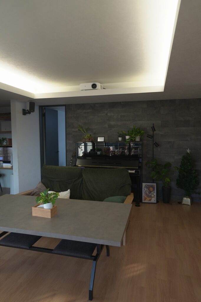 リビングでホームシアターを考える時は、投影距離で対応しているものが多い2~3mのところにプロジェクターを置く計算で間取りを作ると、プロジェクターの選択肢が増えると感じました。
