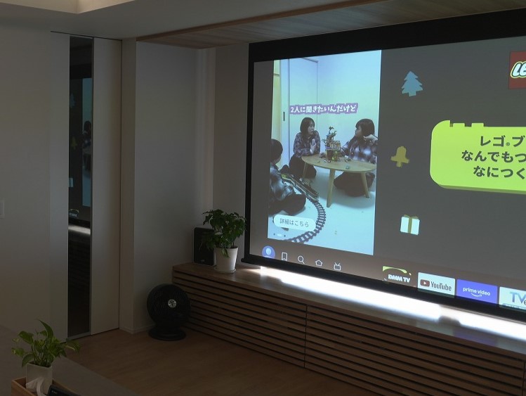 その代わりにリビングにプロジェクターを設置して、ホームシアターシステムを組んでいます。