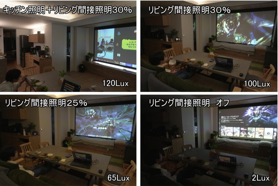 プロジェクター視聴時、わが家ではリビングの照明を調光、もしくは消して視聴しています。