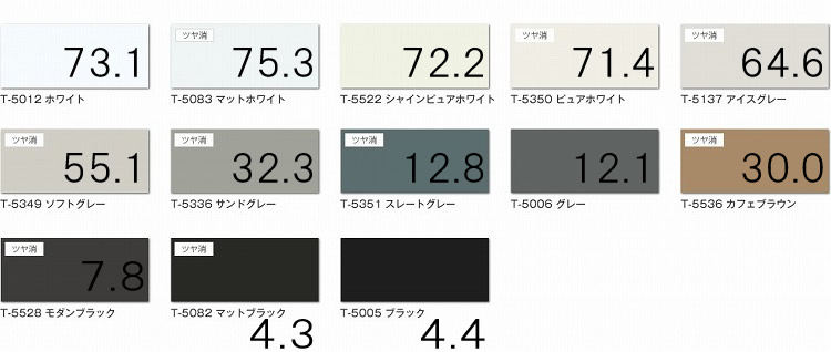 (画像引用:省エネ効果が違う?ブラインドカラー100色「日射反射率」を徹底比較!/ブラインド ガイド)